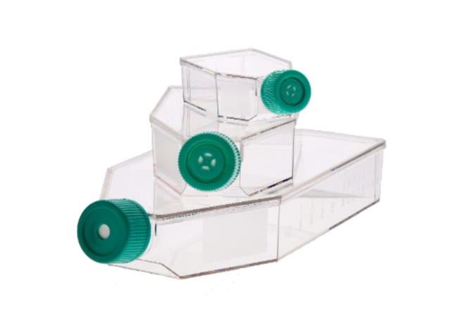 Alkali Scientific non treated TC flasks are constructed from optically clear virgin polystyrene and features a canted neck Ideal for growing cells in suspension Packaged in sterile resealable Zip bags High clarity 100% virgin polystyrene Frosted writing and clear graduations Stackable Sterilized by E-Beam Vent caps (with breathable 0 22um membrane) Clear lot number for batch traceability Non-Pyrogenic DNase/RNase free Use Alkali Scientific canted neck TC Flasks Non-Treated for a variety of cell culture applications including suspension cell growth These sterile flasks feature a clear untreated hydrophobic polystyrene surface and are ready for use in an aseptic environment These flasks are RNase/DNase free and non-pyrogenic and the included 0 22um vented cap is designed to prevent contamination while allowing airflow inside or outside your incubator Stackable for easy handling and storage Alkali Scientific Flat-Bottom Flasks Non-Treated are available in t25 t75 t175 and
