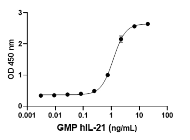 Cell-Vive™ GMP Recombinant Human IL-21 (carrier-free); Reactivity: Human; Apps: BA, Cell Culture; Size: 100 μg
