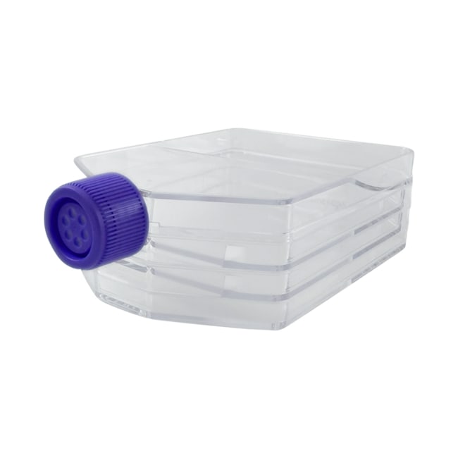 The CellPro3-Layer Multi-Layer Cell Culture Flask provides 525 cm of total growth surface area offering an efficient and scalable solution for adherent cell culture Designed for uniform cell growth and optimal productivity these flasks enable consistent medium distribution across all layers enhancing cell expansion while minimizing handling time Manufactured from high-quality polystyrene (GPPS) with vacuum plasma tissue culture (TC) treatment the flask ensures superior cell adhesion Its leak-proof design prevents cross-contamination allowing for safe and efficient cell culture workflows Compatible with 10 mL serological pipettes the flask supports easy liquid aspiration replenishment and cell harvesting directly within the system Each flask is individually lot-numbered for traceability and conforms to USP Class VI standards Equipped with a vent cap made from high-density polyethylene (HDPE) and a polytetrafluoroethylene (PTFE) filter membrane the CellPro3-Layer Flask is steriliz