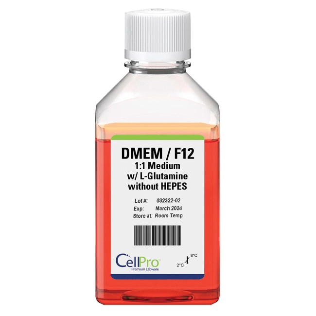 Alkali Scientific CellPro™ DMEM/F12 1:1 medium, with L-glutamine; without HEPES, 500 ml, 10/Case