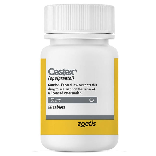 Cestex (epsiprantel) tablets are indicated for the removal of tapeworms in cats (Dipylidium caninum and Taenia taeniaeformis) and dogs (Dipylidium caninum and Taenia pisiformis). Only one dose is needed. Fasting is not necessary or recommended. Do not use in animals younger than 7 weeks.