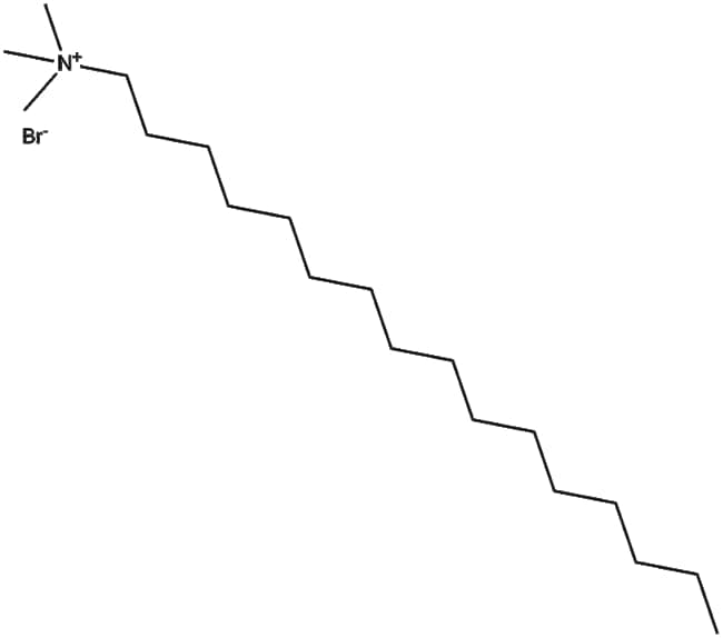Cetrimonium Bromide (CTAB) (CAS 57-09-0) is a cationic surfactant that exerts its biological activity primarily through disruption of microbial membrane integrity via electrostatic interactions with negatively charged membrane components CTAB demonstrates antimicrobial activity by inhibiting microbial growth in in vitro assays Commonly employed in molecular biology protocols CTAB facilitates nucleic acid extraction through cellular lysis precipitation and purification particularly in plant genomic DNA isolation Additionally it is useful for antiseptic formulation studies nanoparticle synthesis and pharmaceutical research including drug delivery system development and stability studies