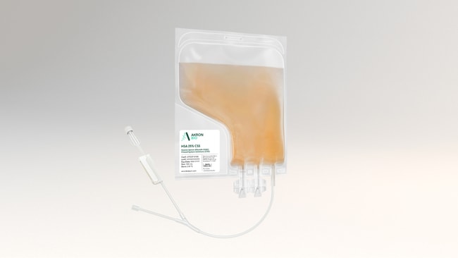 Akron’s Human Serum Albumin (HSA) 25% Closed System Solutions (CSS)™ is manufactured following relevant cGMP guidelines for blood-derived ancillary materials. Product Features:Raw Material• Human Plasma from US-licensed plasma donation centers• Donor screening and virus testing per 21 CFR 610.40• cGMP Raw Material – Cohn Fraction VManufacturing• Type II eCTD DMF (#019354) on file with FDA• Formulated with WFI (water for injection)• Does not contain stabilizers Caprylate or N-Acetyl-L-Tryptophanate• No animal-derived materials are used in the manufacture of this product• Sterile microfiltration followed by aseptic fillingStability• 24-month shelf life• Store at 2-8 °C• Transport with cold packsFor Use StatementFor research use or further manufacturing use in ex vivo cell therapy applications. This product is not intended for direct in vivo use or for direct clinical use as a drug, therapeutic, biologic, or medical device.