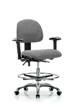 Fisherbrand™ Fabric Chair Chrome - Medium Bench Height with Seat Tilt, Adjustable Arms, Chrome Foot Ring, and Casters in Fabric