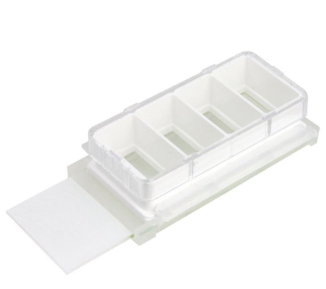 Chamber Cell Culture Slide from Nest allows scientists to grow cells directly on a microscope slide without need for further transfer. The microscope slide is a standard size, 25 mm x 75 mm. NEST cell culture chambered slides are designed for various cell-based experiments and are also useful for virus, toxicity tests and immunocytological experiments. Each chamber slide is composed of a base made of polypropylene, the slide which is made of borosilicate glass, the chambers which are made of polystyrene. The slides come in packs of 6 slides/per tray and the tray can be used as an incubation rack in your CO2 incubator.