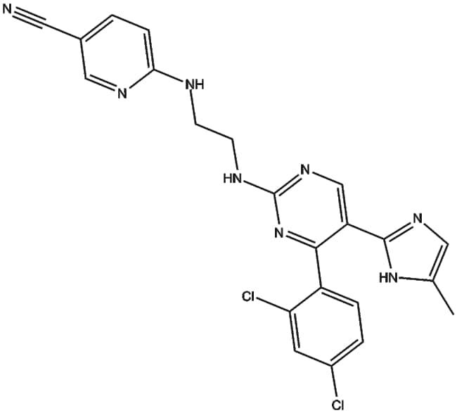 CHIR-99021 (CT99021 CAS 252917-06-9) is a selective inhibitor of glycogen synthase kinase-3 (GSK-3) targeting both isoforms GSK-3 and GSK-3 with IC50 values of approximately 10 nM and 6 7 nM respectively Through inhibition of GSK-3 CHIR-99021 stabilizes downstream factors like -catenin and c-Myc supporting pluripotency and self-renewal in mouse embryonic stem (ES) cells such as B6 BALB/c and J1 mESC lines Additionally its use influences signaling pathways including Wnt/ -catenin TGF- /Nodal and MAPK and modulates epigenetic regulators like Dnmt3l impacting differentiation and proliferation processes in thymocytes