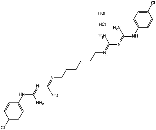 Chlorhexidine HCl (CAS 3697-42-5) is an antiseptic agent designed to interact with microbial cell membranes thereby increasing membrane permeability and disrupting membrane integrity Chlorhexidine HCl exerts its biological activity primarily through binding to negatively charged surfaces of bacterial membranes resulting in leakage of cellular contents and consequent microbial cell death In microbiological assays chlorhexidine HCl demonstrates broad-spectrum antimicrobial activity with reported IC50 values against various microbial strains generally in the micromolar concentration range though specific values depend on the target organism and experimental conditions Based on these pharmacological properties chlorhexidine HCl holds research potential in antimicrobial susceptibility testing and as a control compound in comparative studies of novel antimicrobial agents