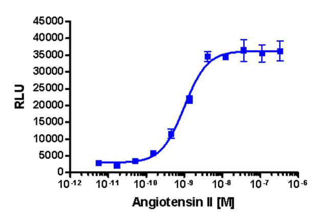 The PathHunter AGTR1 cell line is a stable, engineered cell line for use in studying drug candidates (small molecules or biologics) targeting GPCRs. This cell line enables assessment of ligand (e.g. angiotensin II) based activation of AGTR1 GPCR activity via detection of β-arrestin recruitment. The included cell line overexpresses ProLink-tagged AGTR1 and EA-tagged β-Arrestin-2. Activation of AGTR1 stimulates the recruitment of β-Arrestin-2 and produces EFC signal. This stable modified cell line is provided as two vials of cryopreserved cells. For detailed product information, User Manual and datasheet, visit www.discoverx.com/gpcr.