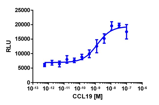 The PathHunter CCRL1 cell line is a stable, engineered cell line for use in studying drug candidates (small molecules or biologics) targeting GPCRs. This cell line enables assessment of ligand (e.g. CCL19/MIP-3β) based activation of CCRL1 GPCR activity via detection of β-arrestin recruitment. The included cell line overexpresses ProLink-tagged CCRL1 and EA-tagged β-Arrestin-2. Activation of CCRL1 stimulates the recruitment of β-Arrestin-2 and produces EFC signal. This stable modified cell line is provided as two vials of cryopreserved cells. For detailed product information, User Manual and datasheet, visit www.discoverx.com/gpcr.