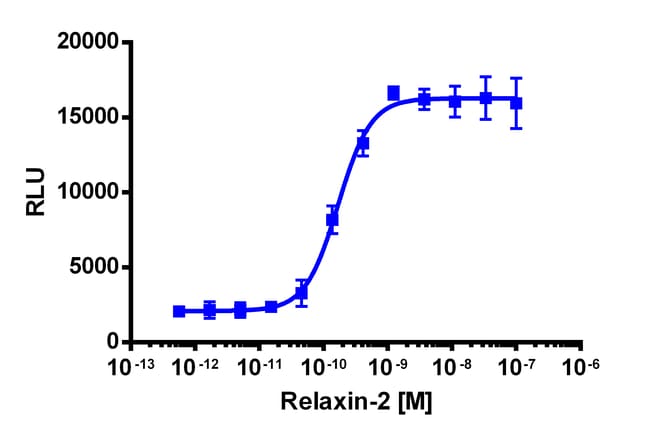 The cAMP Hunter mRXFP1 Gs cell line is a stable, engineered cell line for use in studying drug candidates (small molecules or biologics) targeting GPCRs. This cell line enables assessment of ligand (e.g. relaxin-2) based activation of mRXFP1 GPCR activity via detection of increasing levels of intracellular cAMP. This product uses EFC technology. The cells overexpress wild type mRXFP1, a naturally Gs coupled GPCR. Upon activation of mRXFP1, the increase in levels of intracellular cAMP leads to an increased signal from EFC when the cAMP detection kit is applied. This stable modified cell line is provided as two vials of cryopreserved cells. Please note that this product expresses the Mouse version of this protein. For detailed product information, User Manual and datasheet, visit www.discoverx.com/gpcr.