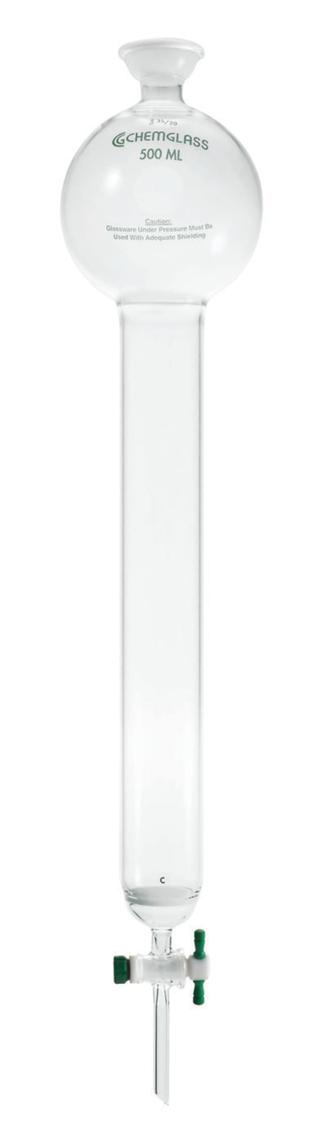 Chemglass Life Sciences Column, Chromatography, 35/20 Socket Joint, 500mL Reservoir, 1in ID X 18in E.L., 2mm Stpk
