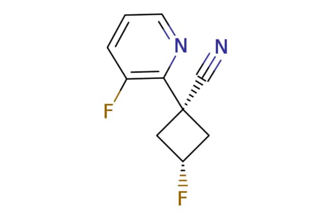 Synthonix - Stock | cis-3-fluoro-1-(3-fluoropyridin-2-yl)cyclobutane-1-carbonitrile | 1g | 490913979 | F31219 | | 1344145-38-5 | MFCD30471653 | 194.185 | C10H8F2N2