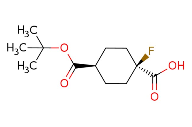 Pharmablock / cis-4-tert-butoxycarbonyl-1-fluoro-cyclohexanecarboxylic acid / 25mg / 784546350 / PBLJD0714 / 0.000 / 1801203-30-4 / [null] / 246.278 / C12H19FO4