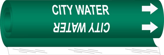 Brady™ City Water High Performance Pipe Marker, 0.375 to 0.5 in., White on Green