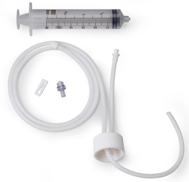 - Includes a luer lock syringe, a one-way check valve, and all necessary luer tubing and cap.