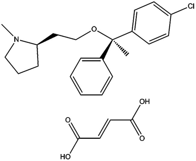 Clemastine Fumarate (CAS 14976-57-9) is a small molecule that functions as a selective antagonist of the histamine H1 receptor It demonstrates high affinity for the receptor with an inhibitory concentration (IC50) of 3 nM By blocking histamine H1 receptor-mediated signaling clemastine fumarate is utilized in research to study histaminergic pathways and allergic responses It is also employed to investigate the pharmacological modulation of H1 receptor activity in various cellular and in vivo models