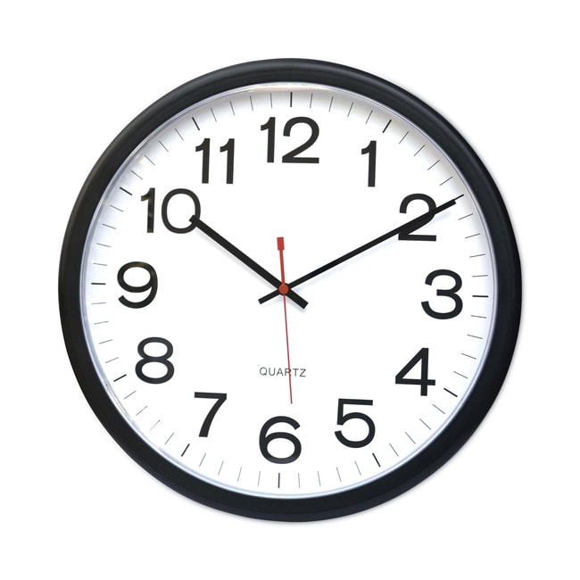 Essendant Universal Indoor/Outdoor Round Wall Clock 13 5 Overall Diameter Black Case 1 AA (sold separately)