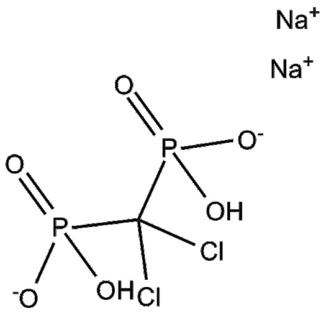 Clodronate Disodium is a synthetic bisphosphonate designed to inhibit osteoclast-mediated bone resorption thereby interfering with bone remodeling processes Clodronate Disodium exerts its biological activity primarily by inducing apoptosis of osteoclasts and hindering their formation and function Liposome-encapsulated Clodronate Disodium formulations are also used experimentally to selectively deplete macrophages in vivo Based on these pharmacological properties Clodronate Disodium holds research potential in studies of osteoclast biology bone metabolic pathways osteoporosis metastatic bone disease arthritis and in investigating macrophage-mediated inflammatory and autoimmune responses as well as tumor-associated macrophage functions