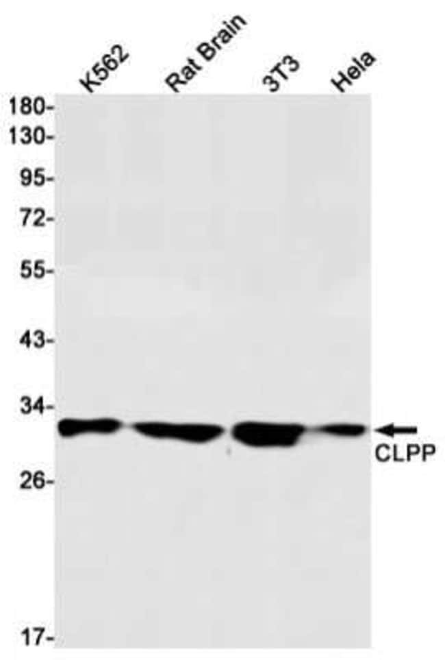 CLPP Monoclonal antibody specifically detects CLPP in Human, Mouse, Rat samples. It is validated for Western Blot, ELISA, Immunohistochemistry, Immunohistochemistry (Paraffin), ImmunofluorescenceSpecifications
