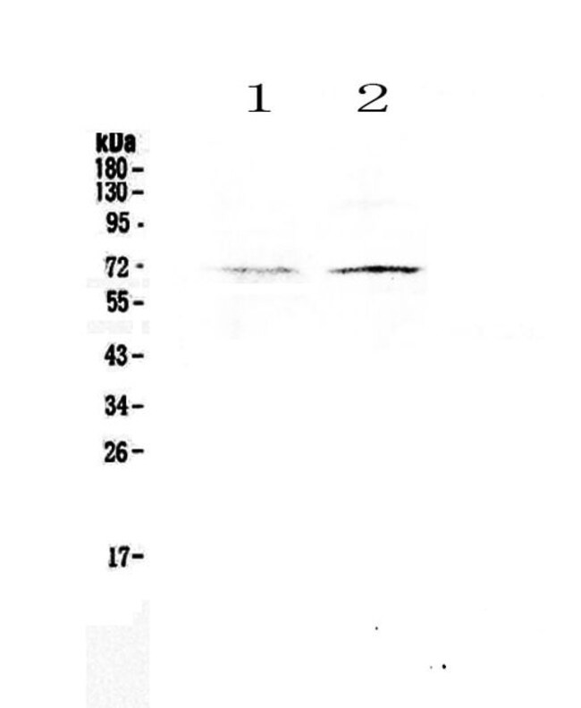 Reconstitute with 0.2 mL of distilled water to yield a concentration of 500 μg/mL. Positive Control - WB: human Hela whole cell, human HepG2 whole cell. IHC: human placenta tissue, human rectal cancer tissue, mouse cardiac muscle tissue. ICC/IF: U20S cell. Flow: Hela cell.