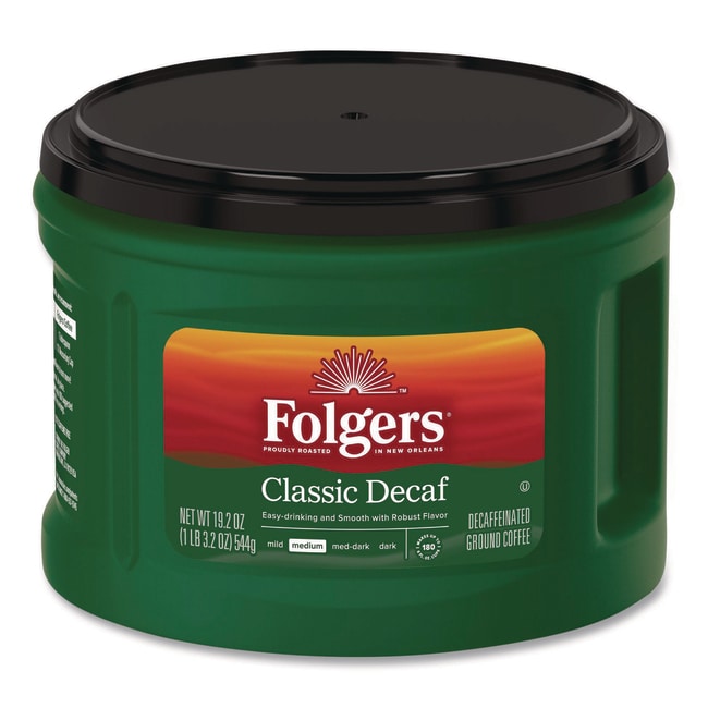 Whether you re cutting back on caffeine or you re just already awake enough at the moment decaffeinated coffee doesn t have to feel like a compromise Folgers has you covered so you never have to miss out on The Best Part of Wakin Up This delicious Folgers decaf coffee lets you enjoy the classic Folgers medium roast flavor and aroma you crave without all the caffeine In fact it s 99 7pct caffeine free Small Can Each can makes up to 68 cups Beverage Type- Decaffeinated Coffee Flavor- Classic Roast Decaf Product Packaging- Can Capacity (Weight)- 19 2 oz