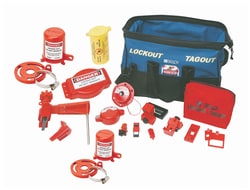 Includes | (1) lockout duffle; (1) lockout pouch; (1) mini cable lockout; (1) universal valve lockout; (1) single-pole circuit breaker; (1) no-hole circuit breaker, 277v; (1) no-hole circuit breaker, 480/600v; (1) multi-pole circuit breaker; (1) oversized ciruit breaker; (1) lockout cleat, 277v; (1) lockout cleat, 480/600v; (1) 3-in-1 plug lockout; (1) wall switch; (1) adjustable gate valve lockout, 1-6.5 in.; (1) gate valve lockout, 1-2.5 in.; (1) small ball valve lockout; (1) base cover plug lockout, 7/8 in.; (1) base cover plug lockout, 1-3/8 in. |