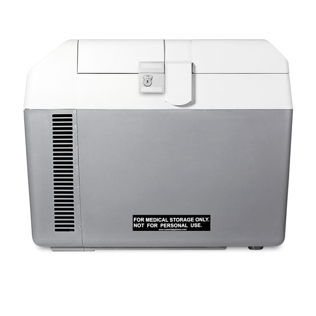 GENERAL PURPOSE ONLY FOR NON-CRITICAL USE Portable 12V/24V cooler capable of operating at -18C or standard refrigerator temperatures, with lock and collapsible trolley. 17.0' H x 21.25' W x 14.25' D Can operate as a refrigerator or freezer with the ability to reach and hold -18 C: https://www.accucold.com/product/SPRF26M
