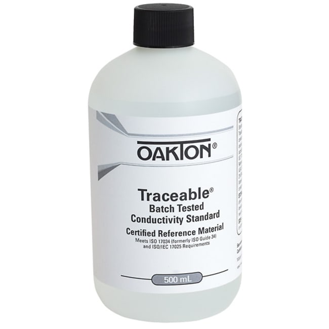 , Traceable conductivity standards are Certified Reference Materials, making one of the most accurate availableAll Oakton Traceable conductivity standards are NIST-traceable reference materialsSupplied with a calibration report from an ISO 17034 and ISO 17025 accredited laboratoryThese standard solutions let you calibrate conductivity instruments to ensure accuracyIf unopened, shelf life is one year; once opened, shelf life will vary by solution valueOakton Traceable Conductivity and TDS Standard, Batch-Tested, 200,000 µS; 500 mL