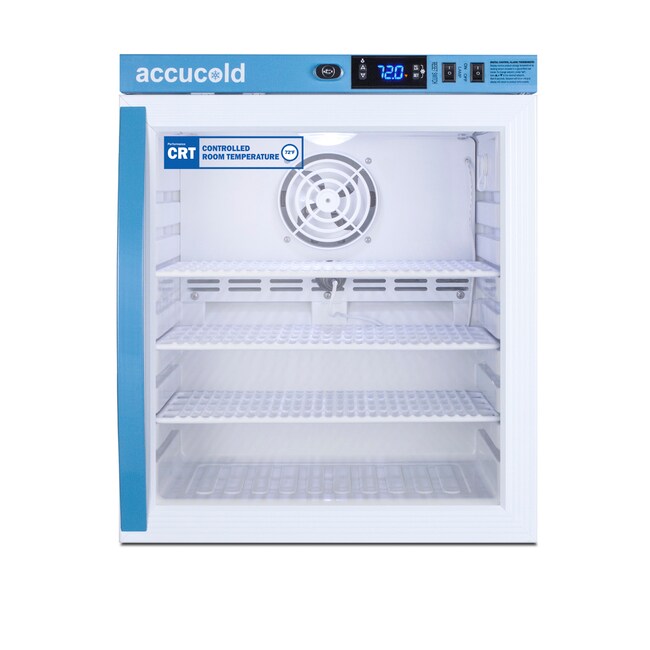 ACCUCOLD ARG1PV-CRT (1cf) Controlled Room Temperature (CRT 68F TO 77F) cabinets are designed and purpose-built for ambient medication and vaccine storage in pharmacy and patient care areas. PRE-SET TO 72F. Equipped with Hi/Lo Temp Alarm, Remote Contacts, open door alarm, power failure alarm, Sensor failure alarm, Self closing door, Hospital grade cord & plug, Access Port, Antimicrobial Handle. +/-1.5C Variation The published temperature variation is derived from the maximum deviation of an NTC sensor in a 1 oz. vial located nearest the chamber geometric center during a 24 hour test period. LED interior Light. Glass Door: https://www.accucold.com/product/ARG1PV-CRT