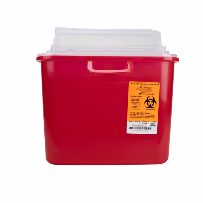 For safe disposal of sharps in restricted access areas. Versatile lid accommodates contaminated items of various sizes. Constructed of puncture resistant polypropylene. Locking top flap. Easy to assemble. Meets all EPA and OSHA standards.