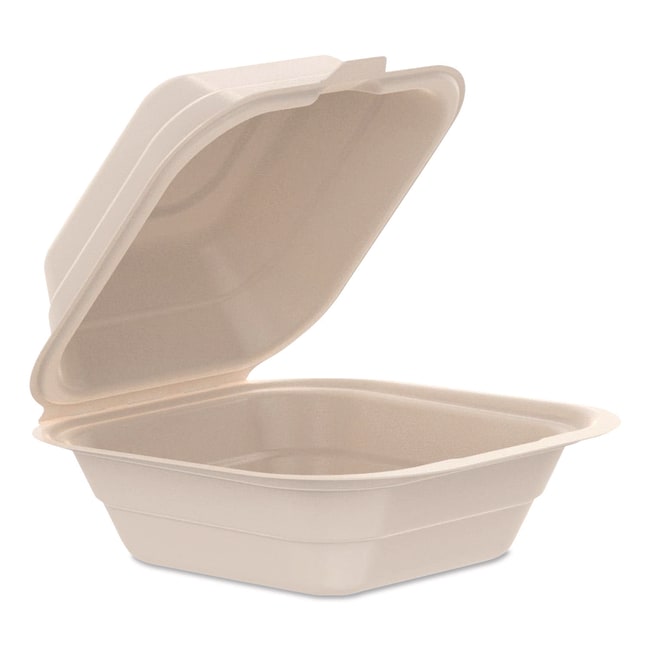 A forward-thinking twist on the classic carryout container Elevate your takeout and delivery with bagasse containers that have no intentionally added PFAS Cut-resistant containers are the perfect packaging for salads sandwiches and entr es Save time preparing orders thanks to the hinged lid design Stable stacking and secure closure help securely package and transport meals Serve hot and cold foods with confidence These microwaveable containers are suitable for customers to reheat and enjoy Whether you re delivering the best takeout in town dishing up food truck fare or serving dinner at the deli counter these hinged lid containers made from bagasse provide a sustainable and high-quality solution ProPlanet Seal This product earns Dart s ProPlanet Seal because it meets ASTM requirements for commercial compostability Food Container Type- Hinged Lid Container Material(s)- Molded Fiber Material Type- Molded Fiber Color(s)- Natural