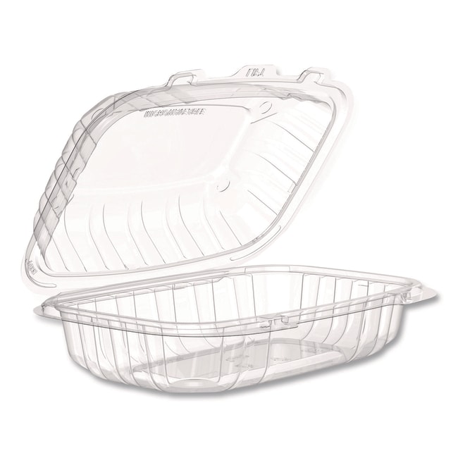 Keeps your food protected while offering a clear view of its contents It is crush-resistant and designed for easy stacking Its dual-temperature use cuts inventory for serving both hot and cold foods The reassuring snap of the lid designed for easy closure ensures that food items are securely stored Its durability and versatility make it an excellent choice for diverse foodservice needs ProPlanet Seal This product earns the ProPlanet Seal because it is compatible with common reclamation processes and can be sorted in materials recovery facilities (MRFs) and processed into market-desire plastic feedstock Food Container Type- Hinged Lid Container Material(s)- PP - Polypropylene Material Type- Plastic Color(s)- Clear
