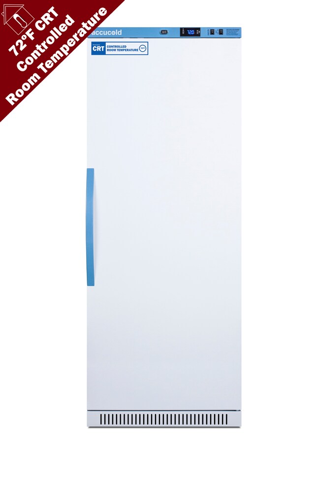 ACCUCOLD ARS12PV-CRT (12cf) Controlled Room Temperature (CRT 68F TO 77F) cabinets are designed and purpose-built for ambient medication and vaccine storage in pharmacy and patient care areas. PRE-SET TO 72F. Equipped with Hi/Lo Temp Alarm, Remote Contacts, open door alarm, power failure alarm, Sensor failure alarm, Self closing door, Hospital grade cord & plug, Access Port, Antimicrobial Handle. +/-1.5C Variation The published temperature variation is derived from the maximum deviation of an NTC sensor in a 1 oz. vial located nearest the chamber geometric center during a 24 hour test period. LED interior Light. Solid Door: https://www.accucold.com/product/ARS12PV-CRT