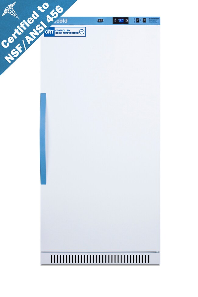 ACCUCOLD ARS8PV-CRT (8cf) Controlled Room Temperature (CRT 68F TO 77F) cabinets are designed and purpose-built for ambient medication and vaccine storage in pharmacy and patient care areas. PRE-SET TO 72F. Equipped with Hi/Lo Temp Alarm, Remote Contacts, open door alarm, power failure alarm, Sensor failure alarm, Self closing door, Hospital grade cord & plug, Access Port, Antimicrobial Handle. +/-1.5C Variation The published temperature variation is derived from the maximum deviation of an NTC sensor in a 1 oz. vial located nearest the chamber geometric center during a 24 hour test period. LED interior Light. Solid Door: https://www.accucold.com/product/ARS8PV-CRT