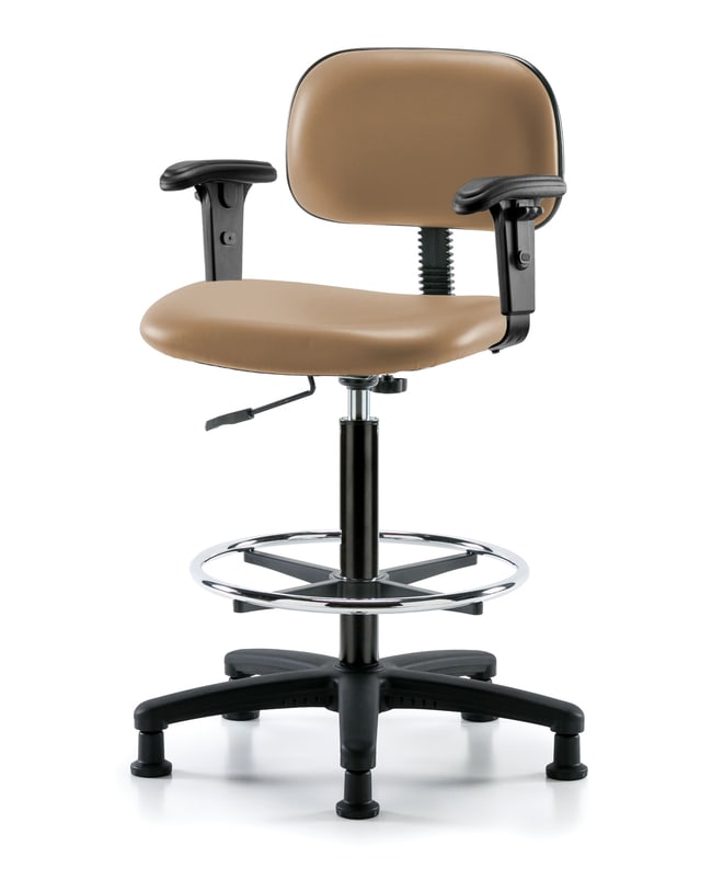 Fisherbrand™ Core Vinyl Chair - High Bench Height with Adjustable Arms, Chrome Foot Ring, and Stationary Glides in Grade C Vinyl