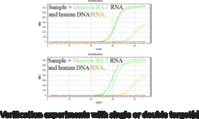 The primers and probes in the SARS CoV2 N1P kit are provided in tube 1 as a 20X concentrated working solution. The same mix also contains primers/probe targeting human RPP30RNA splce juction as an RT-qPCR positve control for human samples. This assay detects: SARS CoV2 detects Omicron variants BA.1, BA.2, BA.4, and BA.5 through JN.1 Organism Type: Virus (+)ssRNA Control (recommended): human RPP30_RNA Enzyme Master Mixes (recommended): Empirical RT-qPCR mastermix, Standard RT-qPCR enzyme mastermix (Item No. 40706) Panels: COVID, Viral-URP Colors: FAM (SARS CoV-2 Omicron), HEX (RPP30) Instruments: Any instrument
