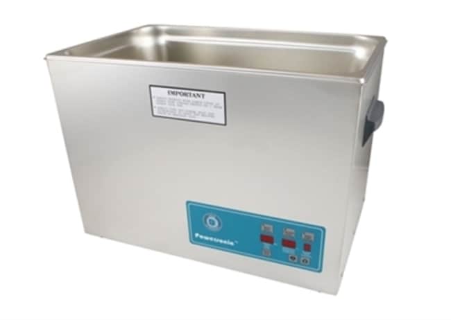 The Crest P2600HTPC-45 Digital Ultrasonic Cleaner w/ Power Control has a 7 gallon tank size and utilizes a digital heater to set temperature and total run time.