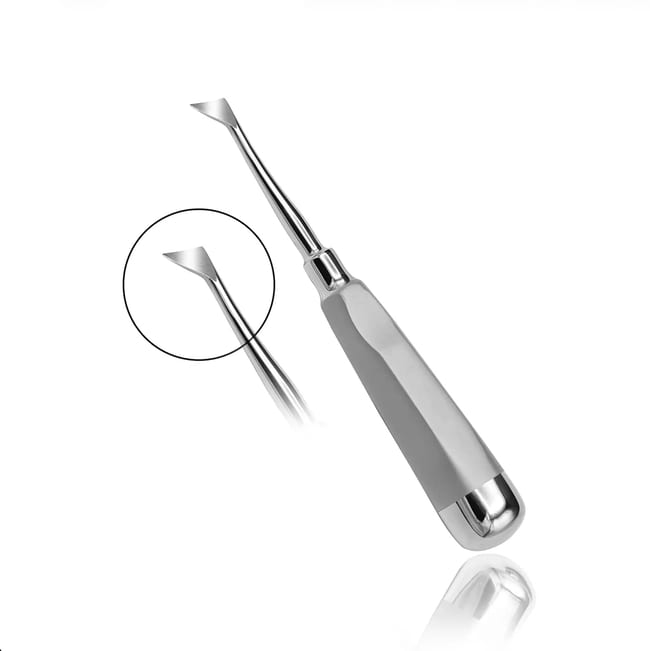 - Sharp triangular blade ideal for elevating broken roots and difficult posterior teeth