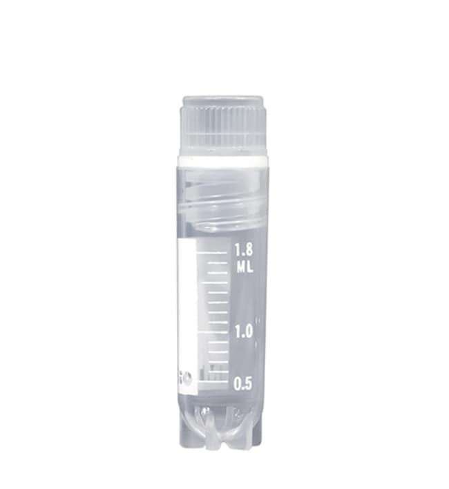 Cryogenic Tubes are designed for safe storage and transportation of biological materials. Ideal for a variety of applications including boiling, freezing and centrifuging.Tubes feature pre-printed graduations, white marking area, and star foot base to lock into rack for easy one-hand use at workstations. Thick wall polypropylene tubes with silicone O-rings maintain positive seal at temperatures as low as-196°C and up to 121°C and have 12.5mm diameter. Supplied 50 tubes per bag.