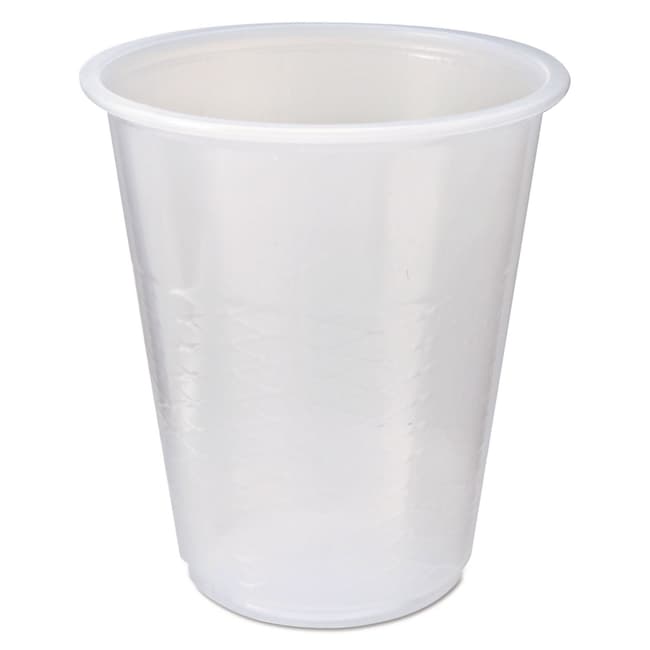 Lightweight plastic cups feature attractive strength-enhancing sidewall ribbing Embossed capacity marks enable quick accurate and consistent fountain filling Printable surface provides opportunities for custom branding and fill identification High-quality polystyrene construction eliminates the potential for flavor and odor transfer Smooth-rolled rims accommodate lid-free sipping Leak-resistant snap-tight lids (sold separately unless otherwise noted) Crisscrossed Sidewall Ribbing Sample-sized- no lid available Cup Type- Cold Cup Interior Volume Capacity- 3 oz Material(s)- Polystyrene (PS) Material Type- Plastic