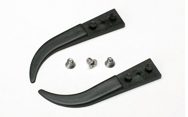 Durable self-aligning replacement carbon fiber tips and screws for replaceable tip tweezers Style 2A curved. Flat round tips.