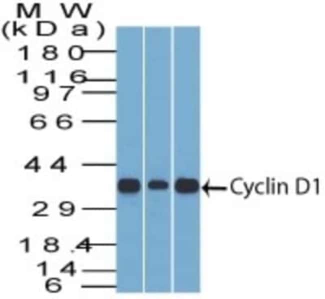 Cyclin D1 Monoclonal specifically detects Cyclin D1 in Human, Mouse, Rat, Monkey samples. It is validated for Western Blot, Flow Cytometry, Immunohistochemistry, Immunocytochemistry/Immunofluorescence, Immunohistochemistry-Paraffin.Specifications