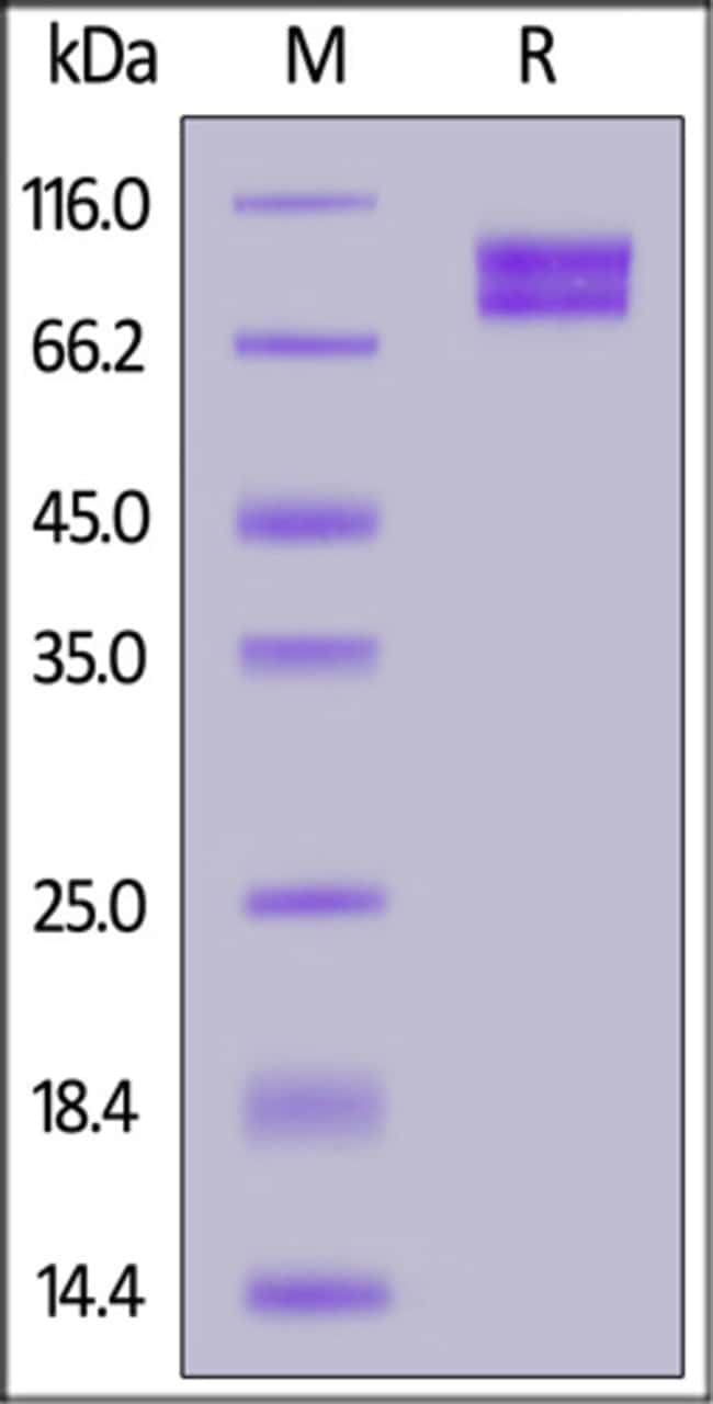 Recombinant Protein;100UG;Cynomolgus MCAM, His Tag (MCM-C52H3) is expressed from human 293 cells (HEK293). It contains AA Val 24 - Gly 559 (Accession # A0A5F8A4A1-1).;This protein carries a polyhistidine tag at the C-terminus. The protein has a calculated MW of 61.5 kDa. The protein migrates as 80-110 kDa under reducing (R) condition (SDS-PAGE) due to glycosylation.