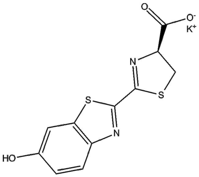 D-Luciferin (potassium salt) a potassium salt derivative of D-luciferin serves as the bioluminescent substrate for firefly luciferase The enzyme-mediated oxidation of D-luciferin in the presence of ATP and oxygen produces bioluminescent emission at approximately 560 nm without the need for external excitation This property is applied extensively in bioluminescence imaging (BLI) experiments including live-cell and small-animal imaging Cells genetically engineered to express luciferase utilize D-luciferin to generate optical signals facilitating non-invasive visualization and tracking of biological events such as tumor growth gene expression dynamics in vivo distribution and therapeutic responses