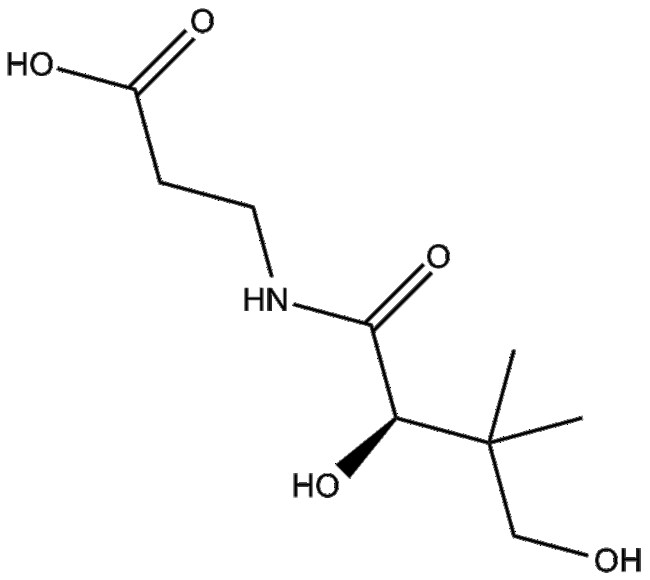 D-Pantothenic acid (CAS 79-83-4) also known as vitamin B5 is a water-soluble vitamin essential for the biosynthesis of coenzyme A and the metabolism of fatty acids carbohydrates and proteins Mechanistically it participates in cellular energy production and biosynthetic pathways through its role as a precursor to coenzyme A In rabbit models administration of pentothenate (20 mg/kg) increased postoperative tendon and skin strength and elevated fibroblast content in wound sites supporting roles in tissue repair Pantothenic acid deficiency has been associated with a higher incidence of hypertension due to impaired adrenal regeneration In the CNS it accumulates and undergoes phosphorylation in neural tissues with its metabolism susceptible to modulation by specific inhibitors In murine models pantothenic acid reduced valproic acid-induced neural tube defects suggesting a protective effect in embryonic development studies