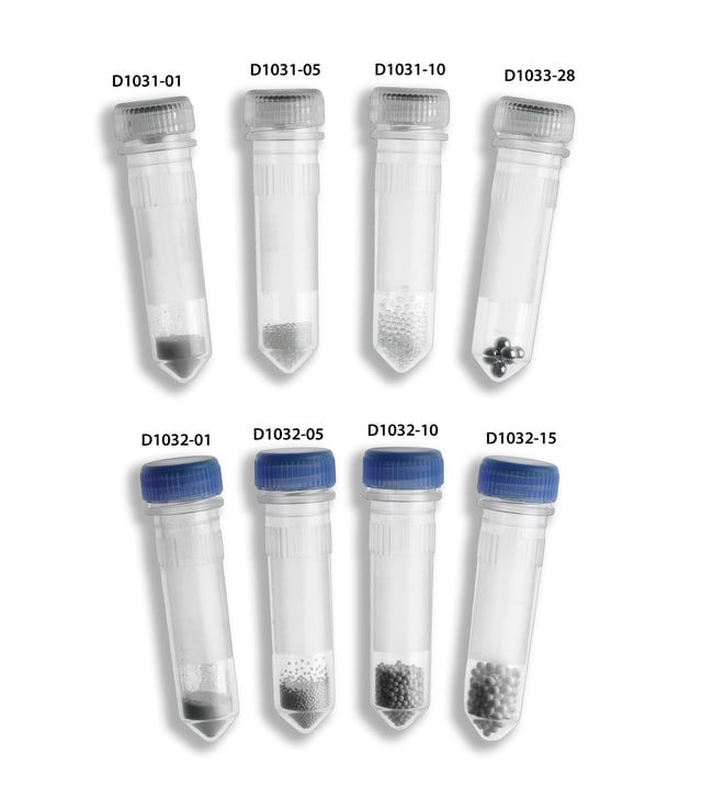 These Alkali Scientific™ D1032-01 Prefilled 2.0ml tubes are prefilled with an appropriate amount of beads for bead homogenization. Tubes are ready to use – beads are acid washed and heat treated to remove contaminants and render them nuclease and protease free. Suitable for homogenization of bacteria, fungi, spores, molds and small yeasts. Compatible with BeadBug™ Microtube homogenizers and all common bead homogenizers. The triple-pure beads are molecular biology grade, and are acid washed, heat treated and tested free of nuclease. The stainless steel beads are acid-washed as well. All tubes are non-skirted with screw-cap.