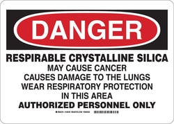 | Displayed Text | DANGER - Respirable Crystalline Silica may cause cancer - causes damage to the lungs - wear respiratory protection in this area - authorized personnel only |