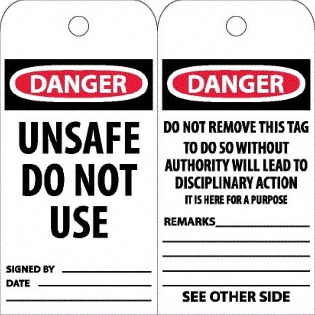 Accident Prevention Tag: Rectangle, 6" High, Poly, "Danger"