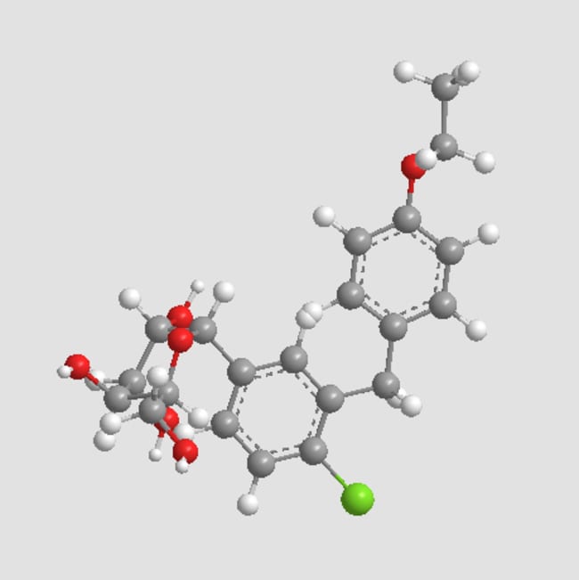 Dapagliflozin (CAS 461432-26-8) is a selective inhibitor of sodium-glucose cotransporter 2 (SGLT2) an integral membrane protein primarily expressed in renal proximal tubules Acting via specific inhibition of SGLT2-mediated glucose reabsorption dapagliflozin facilitates urinary glucose excretion thereby regulating plasma glucose levels It exhibits a potent EC50 of approximately 1 1 nM for human SGLT2 and shows over 1 200-fold selectivity for hSGLT2 over hSGLT1 in vitro Preclinical studies demonstrate improved glucose tolerance enhanced urinary glucose excretion and reduction of hyperglycemia in diabetic animal models Thus dapagliflozin serves as an important investigational molecule for type 2 diabetes research