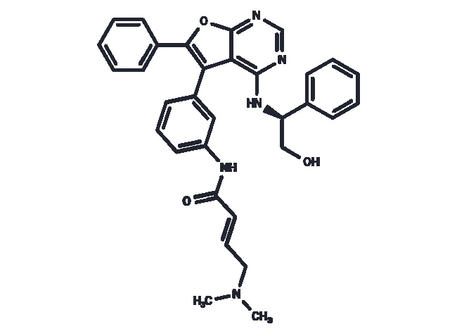 Also available in 1 mg 10 mg 25 mg 50 mg 100 mg 1 mL 10 mM (in DMSO) and bulk. Please contact Fisher for quotes. DBPR112 is an orally active furanopyrimidine-based EGFR inhibitor with IC50s of 15 nM and 48 nM for EGFRWT and EGFRL858R/T790M respectively. DBPR112 can occupy the ATP-binding site. DBPR112 has significant antitumor efficacy. purity: 98%